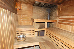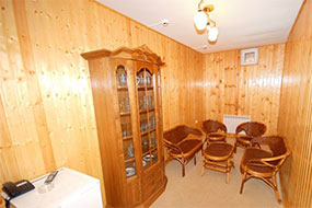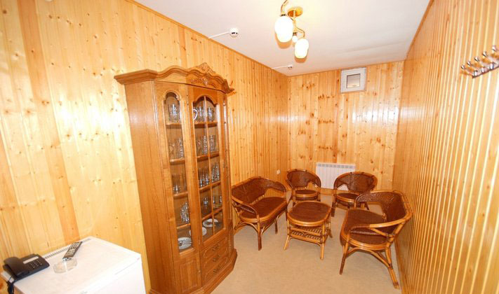 Для Вас в пансионате «Эльбрус» работает настоящая русская баня на дровах. В бане имеется комната отдыха, бассейн с родниковой водой. К комнате отдыха есть мини-бар. Возможен заказ согласно меню кафетерия.