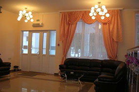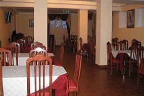Ресторан находится в цокольном этаже пансионата, в просторном помещении которого очень удобно проводить банкеты и фуршеты.