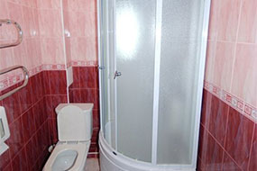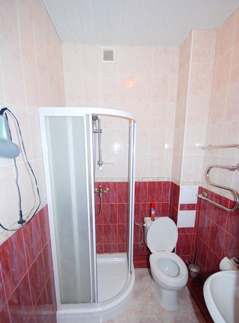 душевая кабина, раковина, санузел, фен.